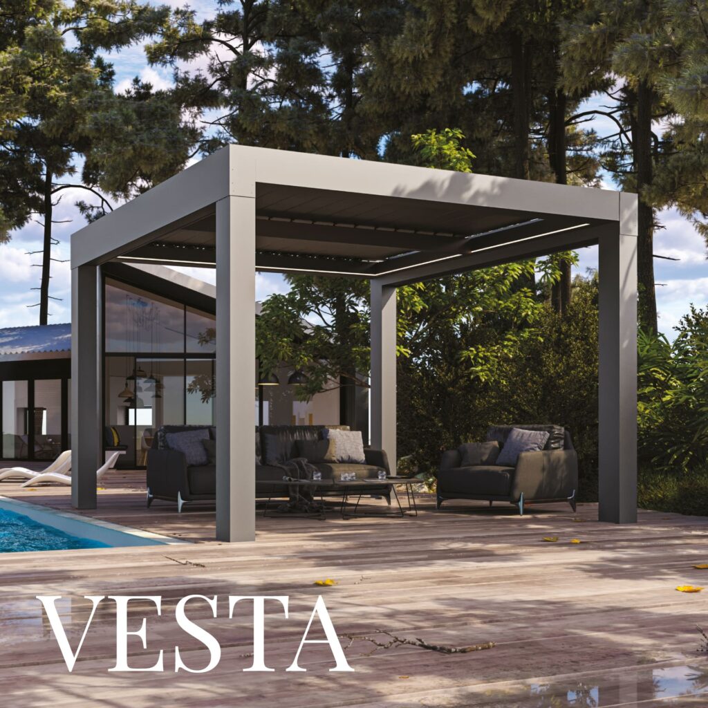 Die Vesta ist mit einem innovativen Lamellendach ausgestattet, das Ihnen volle Kontrolle über Schatten und Belüftung bietet. Die verstellbaren Lamellen lassen sich ganz einfach kippen, um den Lichteinfall zu regulieren oder frische Luft hereinzulassen – ganz nach Ihren Wünschen. Gleichzeitig schützt das System zuverlässig vor Regen, sodass Sie Ihre Außenbereiche bei jedem Wetter genießen können. Das Dach ist so konstruiert, dass es Regenwasser effizient ableitet und Ihre Möbel sowie die Terrasse stets trocken bleiben.